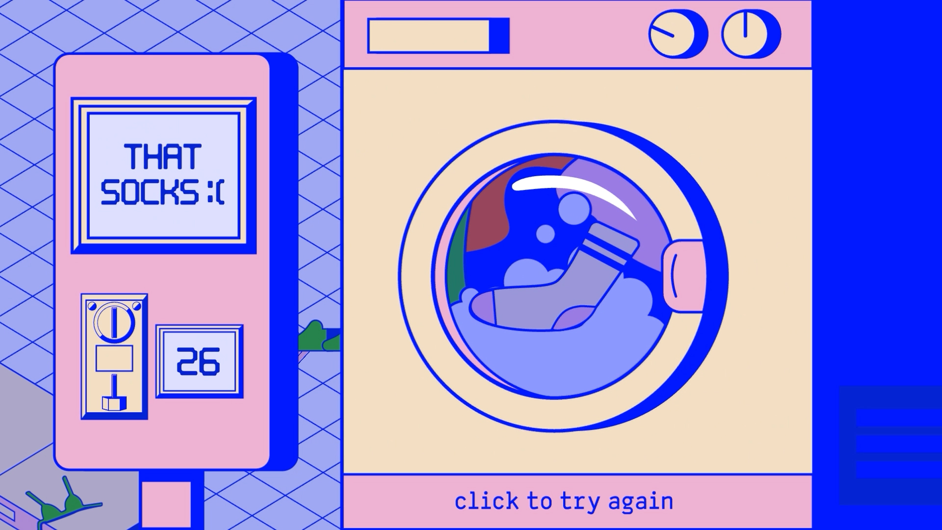 The Missing Sock is a cute and fun flappy bird game where you guide a single sock through a path of washing machines and laundry hazards.